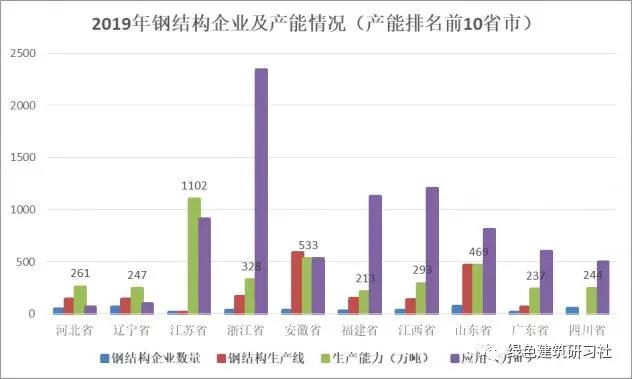 圖6 2019年鋼結構企業及產能情況(產能排名前10省市)