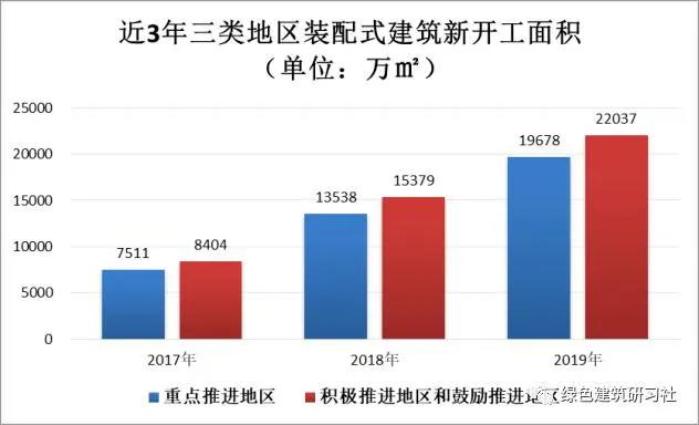 從近三年的統計情況上來看,重點推進地區新開工裝配式建筑面積分別為7511萬m2、13538萬m2、19678萬m2,占全國的比例分別為47.2%、46.8%、47.1%,這些地區裝配式建筑政策措施支持力度大,產業發展基礎好,形成了良好的政策氛圍和市場發展環境。